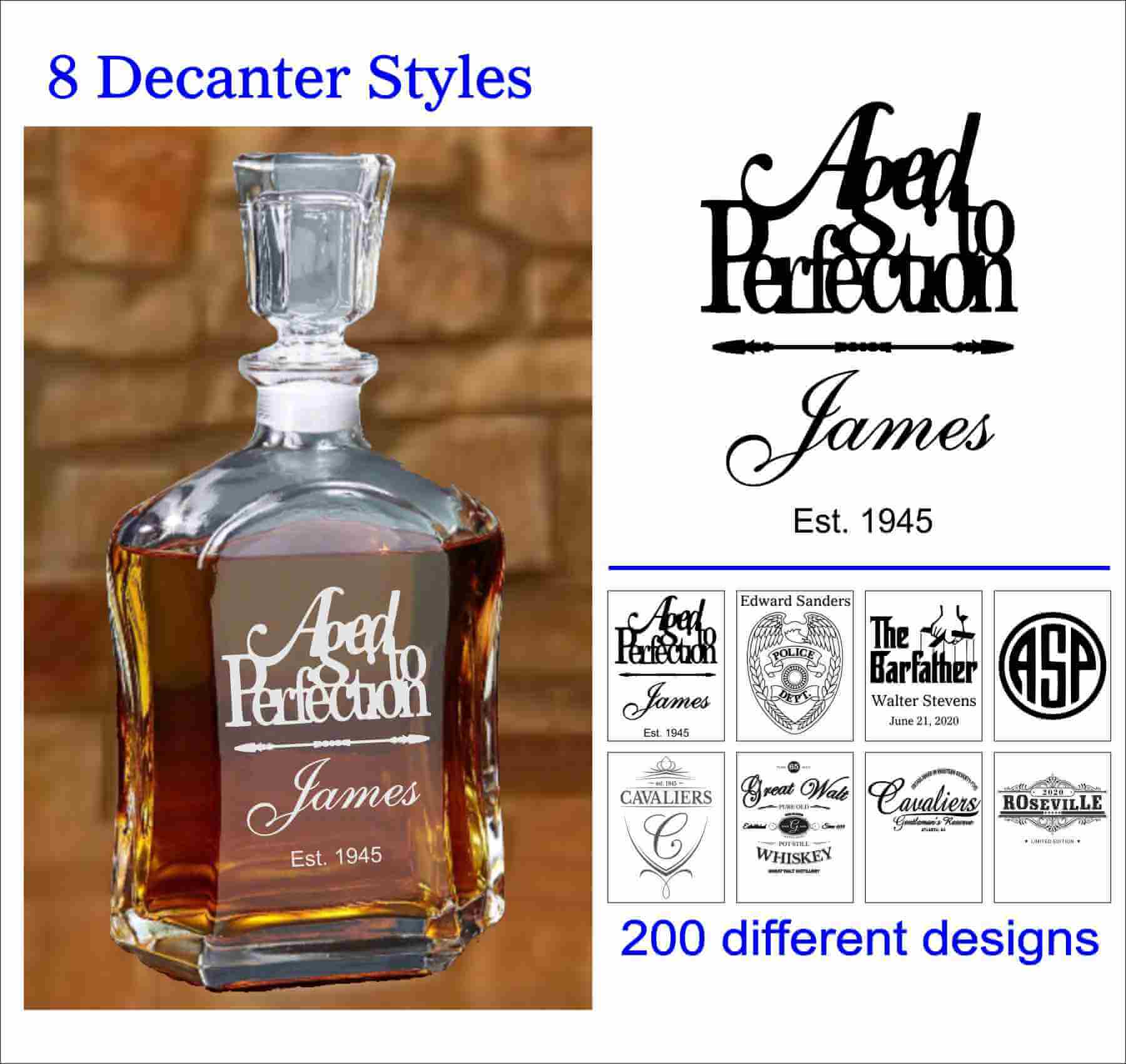 The decanter will be engraved to look like the sample photo but with the information we receive. Therefore, please make sure to leave information exactly how you would like it engraved.