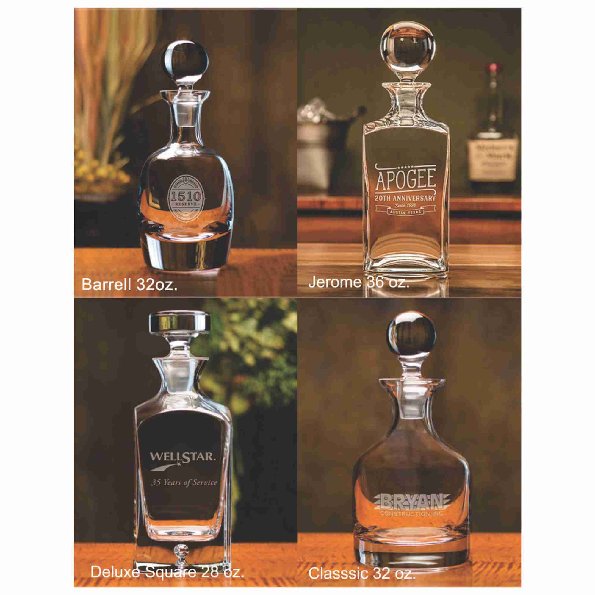 – The Jerome decanter is 11″… 36 oz. capacity Image Area 2 1/4″ x 2 1/2″ H