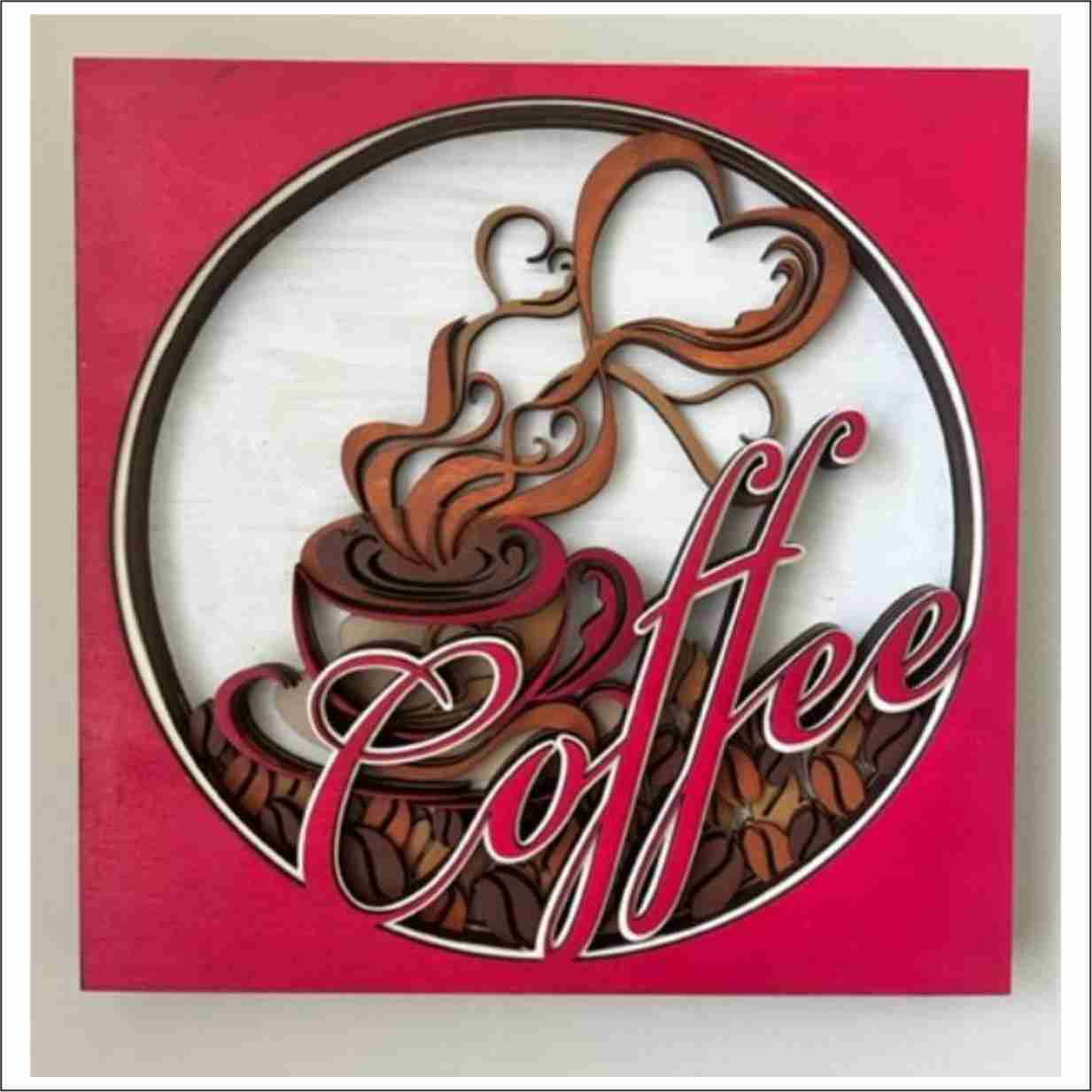 Coffee Shadow Box Wall Decor. 11-5/8″ square and 6 layers!