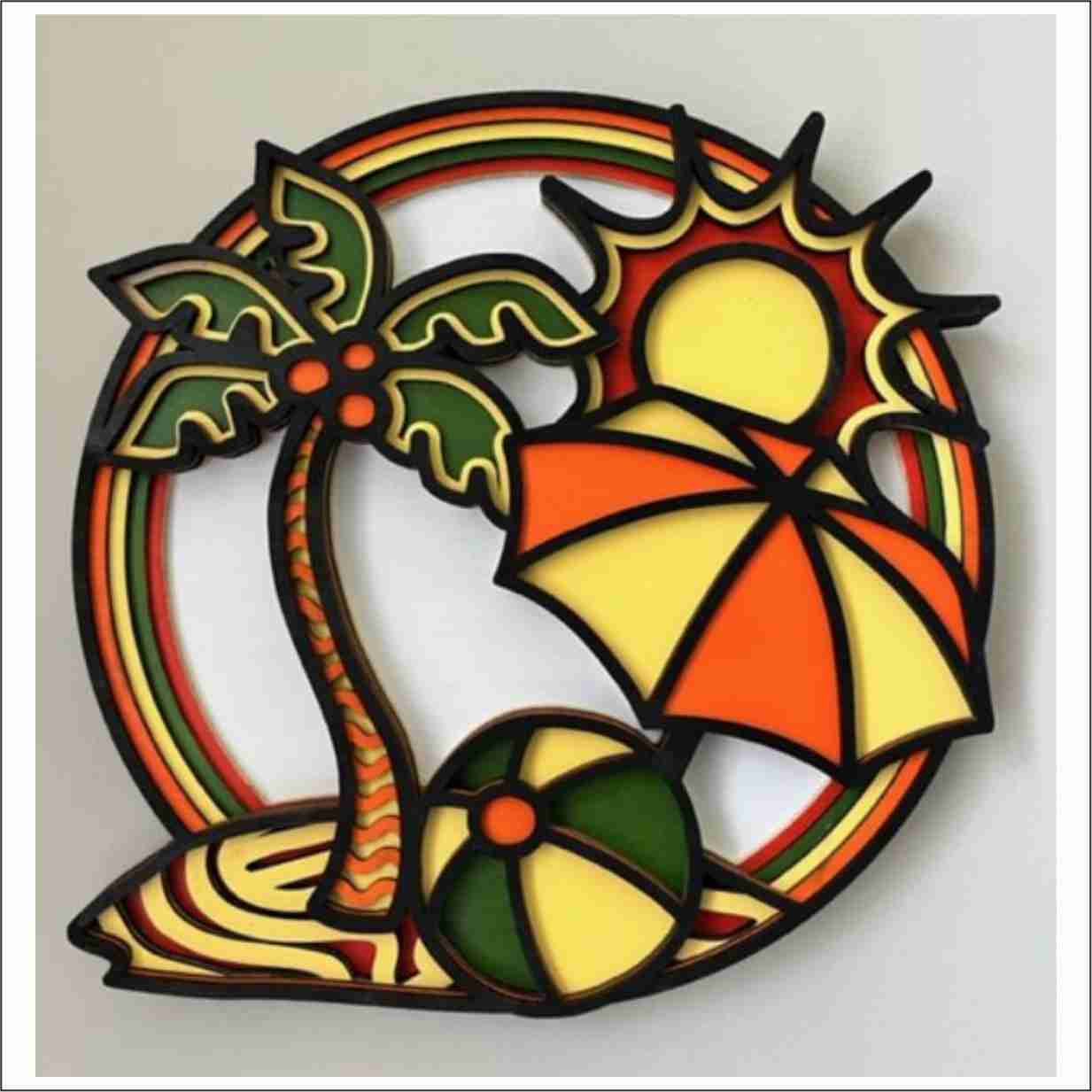 Palm Tree and Umbrella Wall Decor. 11-5/8″ square and 6 layers!